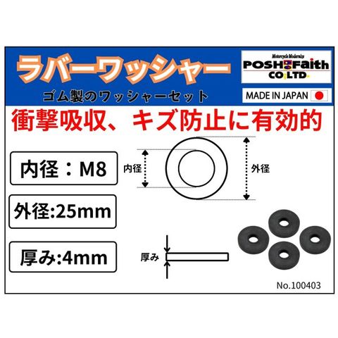 100403 ポッシュ POSH ラバーワッシャーセット 内径8mm 外径25mmx厚さ4mm 4個入り