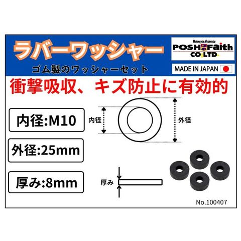 100407 ポッシュ POSH ラバーワッシャーセット 内径10mm 外径25mmx厚さ8mm 4個入り