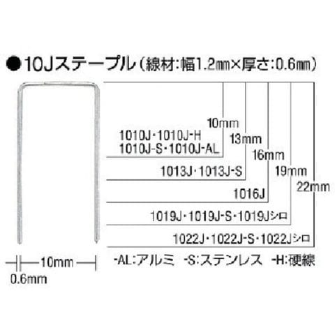 ・タッカ用10Jステープルです。・JIS A 5556(工業用ステープル)1010J-H・1010J-ALのみJIS規格がありません。