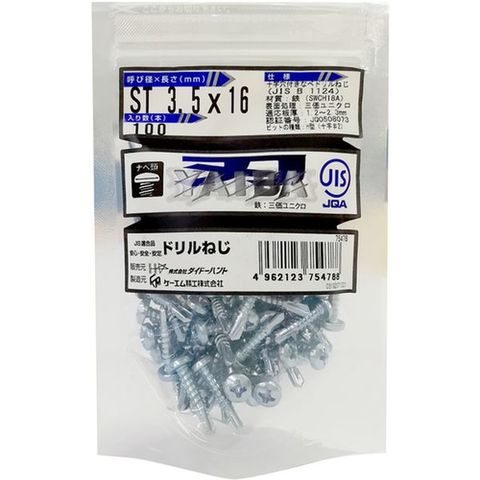 ・タッピングのねじ山を持つ、JIS規格のドリルねじです。・JIS規格に基づいた設計による安定した品質、抜群の施工性、優れた締結力です。・規格に沿って熱処理、硬度管理しているため、高硬度による破断を回避できます。・下穴なしでC形鋼に薄鉄板をとめつけることが出来ます。