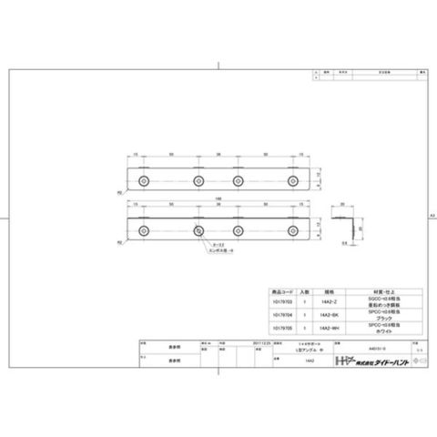 ・色:無地・板厚(mm):0.6・W(mm):166.0・L1(mm):20.0・L2(mm):20.0・穴径(mm):3.2・穴数(個):8・タイプ:L型アングル