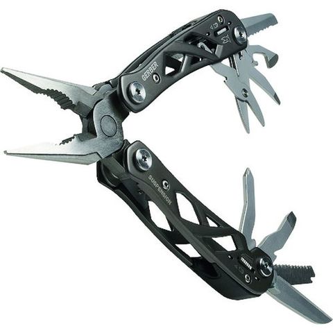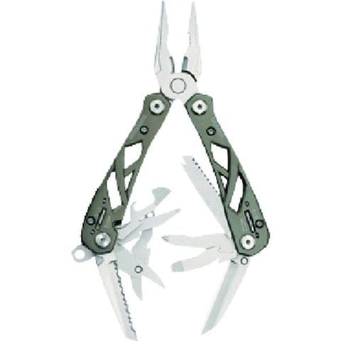 ・プライヤーペンチ(バネ付)・平ドライバー(プラス)・平ドライバー(5.5mmマイナス)・平ドライバー(2.5mmマイナス)・直刃ナイフ(刃長47mm)・波刃ナイフ(刃長47mm)・鋸刃ナイフ(刃長47mm)・はさみ(バネ付)・栓抜き・缶切り