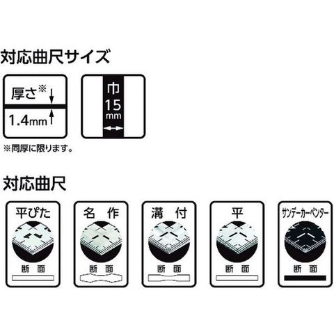 ・角が薄く平たいので細かい材料にもピタリと張り付き、ケガキやすく測りやすくなっています。・対応する曲尺(15mm巾)に取り付けて長いケガキ線が引けます。・突き当て位置を変えることで45°のケガキ線が引けます。
