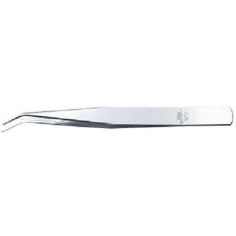 ・微小なパーツ類をつかむことのできる先の細いピンセットです。・つまんだ品物が見やすい先曲ピンセットです。