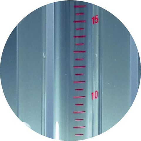 ・排水用チューブ(付属):150mm・シリンダー目盛:50mmまでは1mm単位、50mm以上は5mm単位・架台寸法(mm):100×100×325H・シリンダー外寸法(排水口除く)(mm):35φ×333H