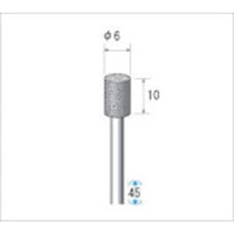 ・粒度(#):100・刃径(mm):6・刃長(mm):10・軸径(mm):3・全長(mm):45・形状:円筒・最高使用回転数(rpm):70000・砥粒:ダイヤモンド