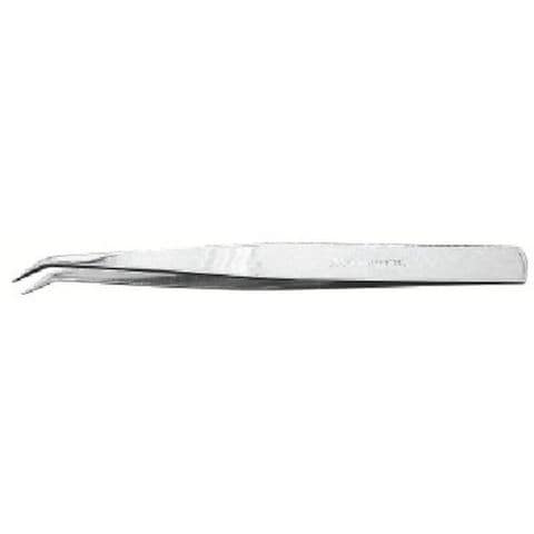 ・微小なパーツ類をつかむことのできる先の細いピンセットです。・つまんだ品物が見やすい先曲ピンセットです。