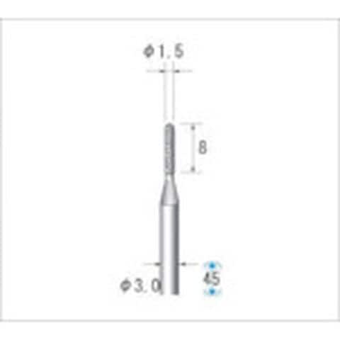 ・粒度(#):150・刃径(mm):1.5・刃長(mm):8・軸径(mm):3・全長(mm):45・形状:円筒先丸・最高使用回転数(rpm):80000・砥粒:ダイヤモンド
