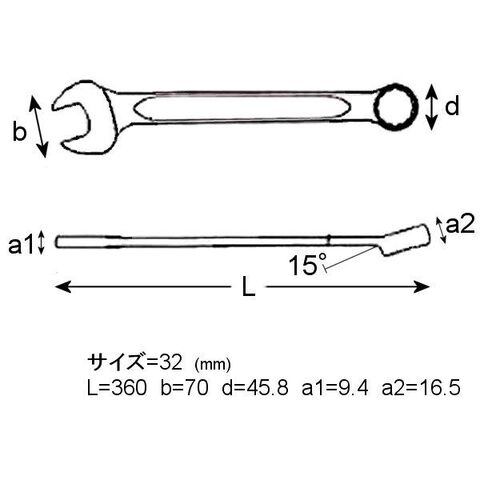 スタンダードタイプの片目片口スパナです。