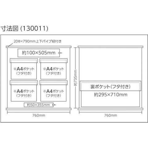 ・上下パイプ・ひも付・裏面収納用ポケット×1ヵ所・A3サイズ用ポケット(横)×2箇所・A4サイズ用ポケット(横)×3箇所