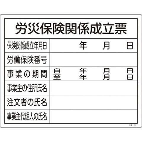 工事関係標識(法令許可票) 労災保険関係成立票 工事-101 400×500mm 塩ビ