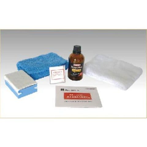 ・本体(液体)、スポンジ、保護手袋、拭き上げ用タオル(白)、仕上げ用クロス(青)