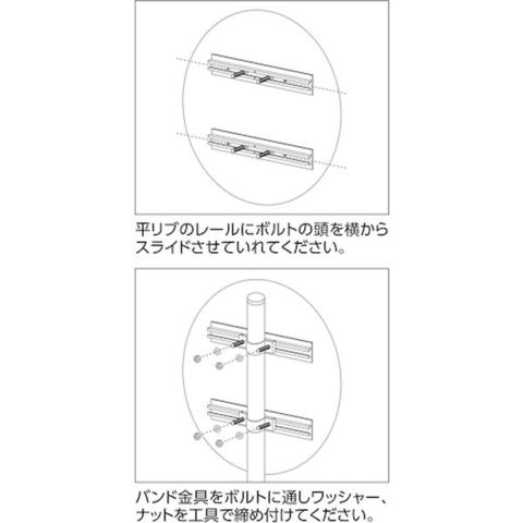 ・平リブ専用のポール取付金具です。・ビス及びナット等が付属しています。