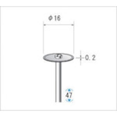 ・粒度(#):130・刃径(mm):16・刃長(mm):0.2・軸径(mm):2.34・全長(mm):47・形状:ディスク・最高使用回転数(rpm):20000・砥粒:ダイヤモンド