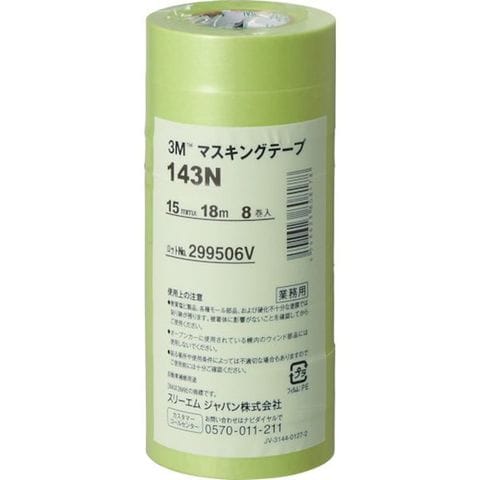 143N15 756-6123 スリーエム 3M マスキングテープ 143N 15mmX18m 8巻入り