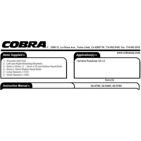 コブラ COBRA シーシーバー 06年以降 ロードライナー XV1900 ミニ