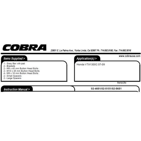 コブラ COBRA シーシーバー 07年-09年 VTX1300C ミニ