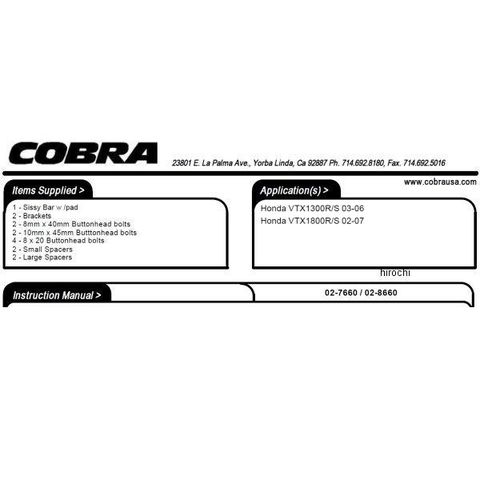 コブラ COBRA シーシーバー ラウンド 02年-07年 VTX1800R スタンダード