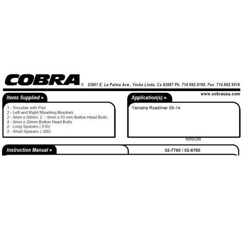 コブラ COBRA シーシーバー ラウンド 06年以降 ロードライナー XV1900 ショート