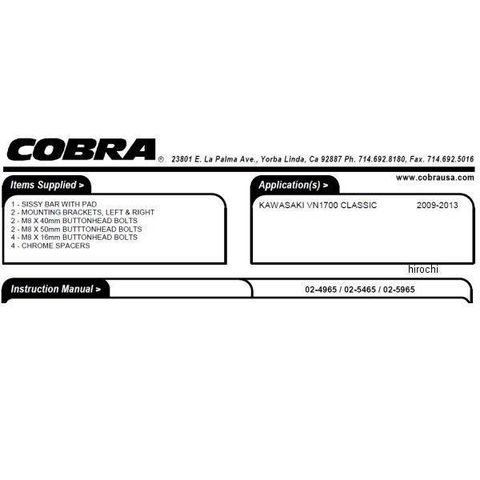コブラ COBRA シーシーバー 09年-13年 バルカン VN1700 スタンダード