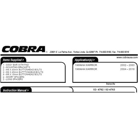 コブラ COBRA シーシーバー 02年-03年 ロードスター XV1700PC ミニ