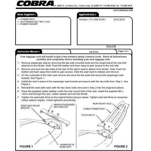 コブラ COBRA ラゲッジラック ソロ フォーム 10年-14年 VT1300CX