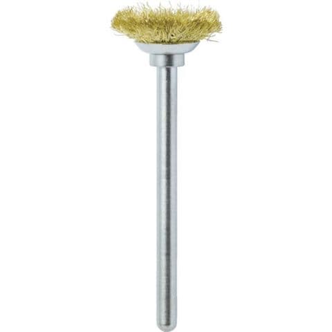 ・線径(mm):0.10・毛材:真鍮・外径(mm):15・軸長(mm):40・軸径(mm):3・最高使用回転数(rpm):10000・摘要:真鍮、銅製品および合金製品の研磨