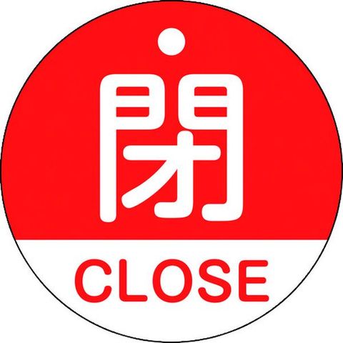 バルブ開閉札 閉・CLOSE(赤) 特15-321A 50mmΦ 両面表示 PET