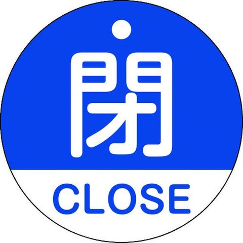 バルブ開閉札 閉・CLOSE(青) 特15-321C 50mmΦ 両面表示 PET