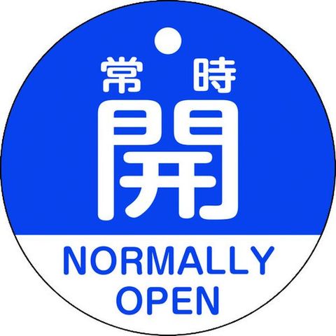 (株)日本緑十字社 緑十字 バルブ開閉札 常時開(青) 特15-322C 50mmΦ 両面表示 PET