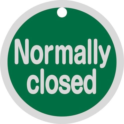 バルブ開閉札 Normally closed(緑) 特15-149B 50mmΦ 両面表示 アルミ製