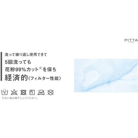 ・ポーラスフィルター技術による立体網目構造で、花粉を99%カットします。・通気性が高いため息がしやすく、柔らかい伸縮性のある素材が顔に密着して隙間をつくらず、長時間着けても耳が痛くならないです。・抗菌加工でマスク表面の菌の増殖を抑制します。・洗って繰り返し使用できて、5回洗っても花粉99%カットを保ち経済的です。