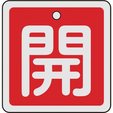 (株)日本緑十字社 緑十字 バルブ開閉札 開(赤) 50×50mm 両面表示 アルミ製