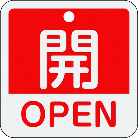 バルブ開閉札 開・OPEN(赤) 特15-401A 50×50mm 両面表示 アルミ製