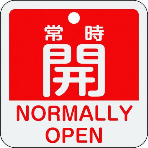 バルブ開閉札 常時開(赤) 特15-403A 50×50mm 両面表示 アルミ製