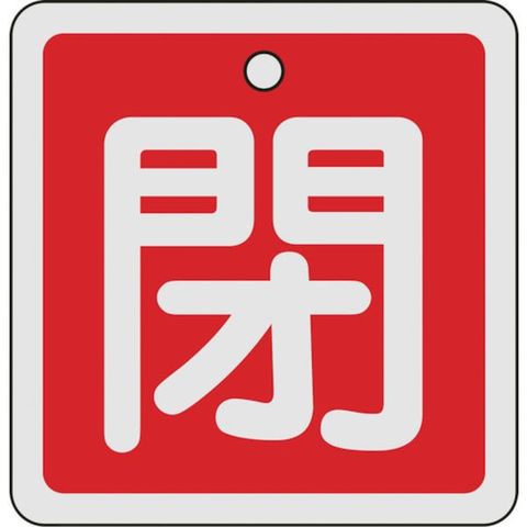 (株)日本緑十字社 緑十字 バルブ開閉札 閉(赤) 80×80mm 両面表示 アルミ製