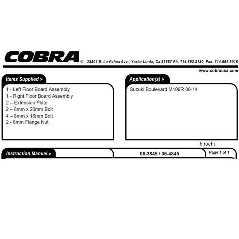コブラ COBRA リア フロアボード クラシック 06年-14年 ブルバード VZR1800、VZR1800N、VZR1800Z