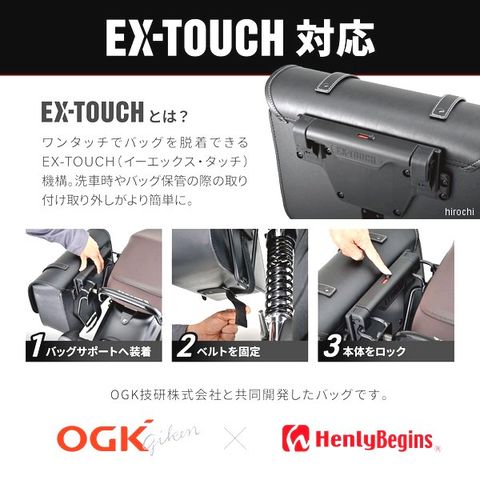 左側専用はヘルメットホルダー付きで、サドルバッグを装着してもヘルメットの装着が可能。