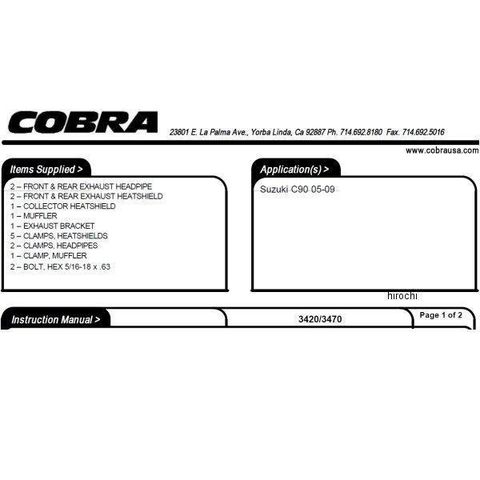 コブラ COBRA フルエキゾースト パワープロ メガホン スラッシュカット 05年-09年 ブルバード VL1500 C90 クローム