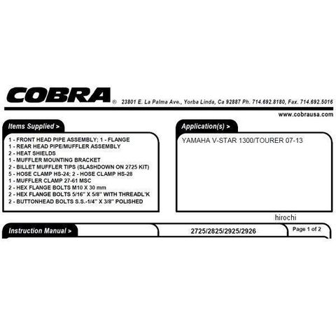 コブラ COBRA フルエキゾースト スピードスター スラッシュダウン 07年-13年 ドラッグスター XVS1300 クローム