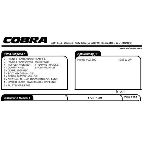 コブラ COBRA フルエキゾースト ストリートロッド スラッシュダウン 88年-07年 シャドウ VT600C クローム