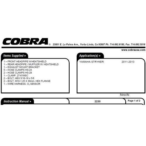 コブラ COBRA フルエキゾースト スピードスター スウェプト スラッシュカット 11年-16年 ストライカー XVS1300 クローム