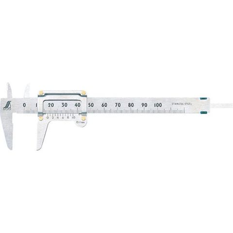 ・メーカーコード:19518・測定範囲(mm):0.1~100・最小表示(mm):0.1・外側用ジョウ(mm):28・内側用ジョウ(mm):12・デプスバー:有・全長(mm):157・器差(mm):±0.1