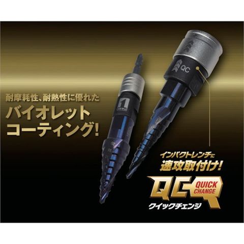 ・インパクトドライバー用のワンタッチビットアダプター付ステップドリルです。・鉄板・デッキプレート・胴縁・チャンネルなどの下穴開けに適しています。・耐摩耗性・耐熱性に優れたバイオレットコーティングです。・注油しながら右高速回転することで、スピーディに穴あけできます。・切りくずを効率的に粉砕して安定の穴あけが可能です。