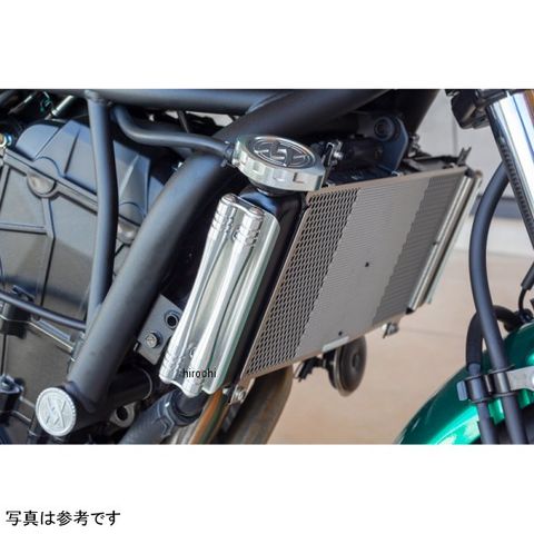 オールビレットで製作された重厚感あふれるツインロッドはジュラルミン系 2017材を用い、上下部にVカット溝を施しウエストライン装備することで、無機質なラジエターを、Z650RSの風格に見合うゴージャスなサイドビューに変貌させます。