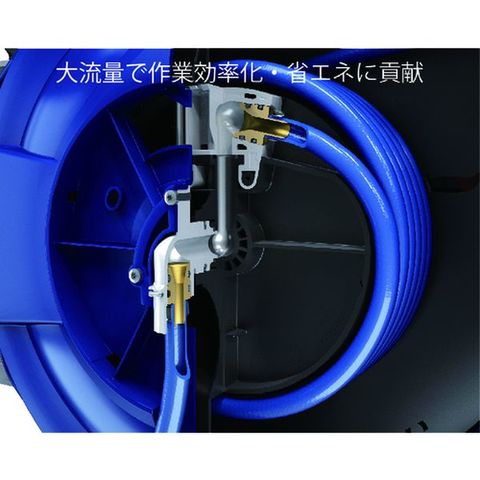 ・巻き取り制御機能によりホースを緩やかに巻き取るため、ホースの暴れによる危険を防止します。・ホースガイドにより均等にホースを巻き取り、収納時のホースの折れ曲がりを防止します。・分解不要でホースの交換が簡単に可能です。・ワンタッチで簡単に取付け可能なため、設置とメンテナンスが容易に行えます。・特許取得済みの大流量設計により、作業効率向上に貢献します。・2006/42/ECに準拠したCEマーク付です。・安全な残圧除去機能により、分離時のホースの反動による事故を防止します。(eSafeカップリング付のみ)・分離時に自動的に残圧を除去します。・国内一般製品と互換性があります。