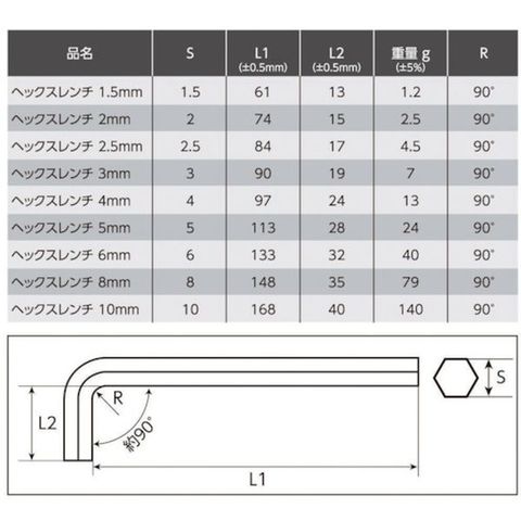 ・セット内容(mm):1.5、2、2.5、3、4、5、6、8、10・セット内容(本):9・形状:ボールポイント(長軸先端)