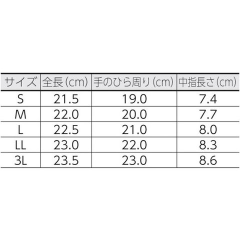 ・色:レッド・サイズ:LL・全長(cm):23.0・手のひら周り(cm):21・中指長さ(cm):8.5・厚さ(mm):1.5・袖口タイプ:オープンリスト・すべり止め:無し