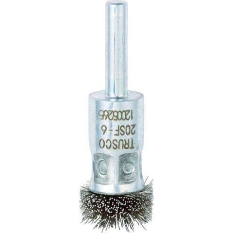 ・線径(mm):0.3・毛材:ステンレス・外径(mm):20・毛丈(mm):10・軸長(mm):25・軸径(mm):6・最高使用回転数(rpm):3000・毛厚(mm):10