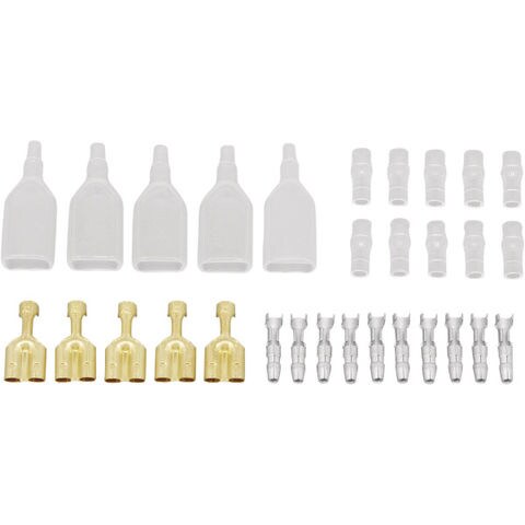 プラスチックスリーブを使用したデュアルメス端子5個とオス端子10個のセット。メス端子は防錆加工。 オス端子は錫メッキ。